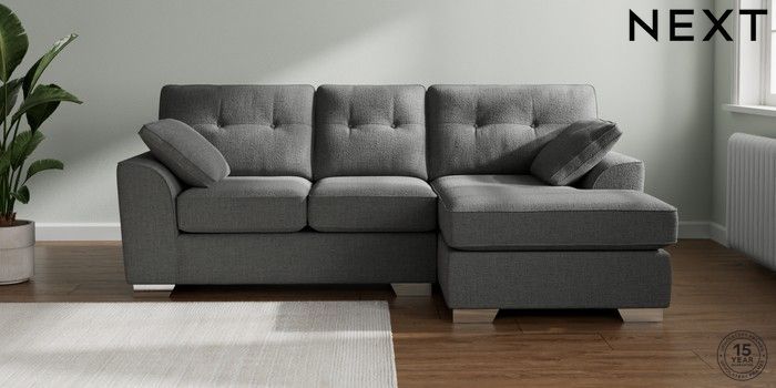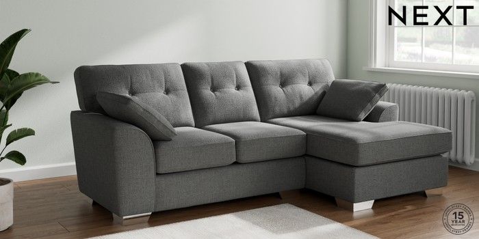 7.2.10 Buy Stamford Buttoned Back Small Sofa Chaise - Right Hand Chunky Texture Dark Grey Large Square Angle - Chrome Metal from the Next UK online shop Click here to use our accessible website