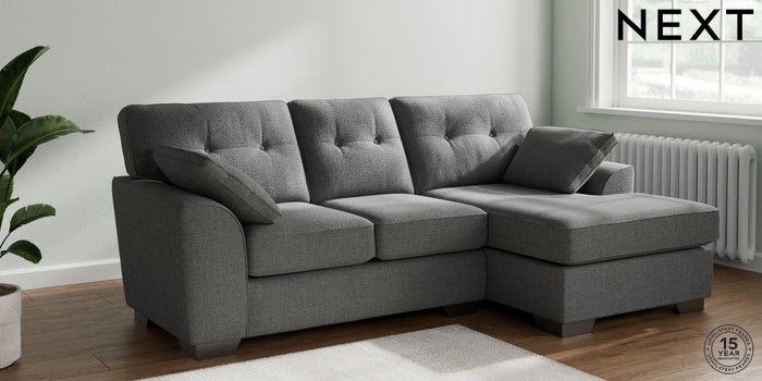 7.2.10 Buy Stamford Buttoned Back Small Sofa Chaise - Right Hand Chunky Texture Dark Grey Large Square Angle - Gunmetal from the Next UK online shop Click here to use our accessible website