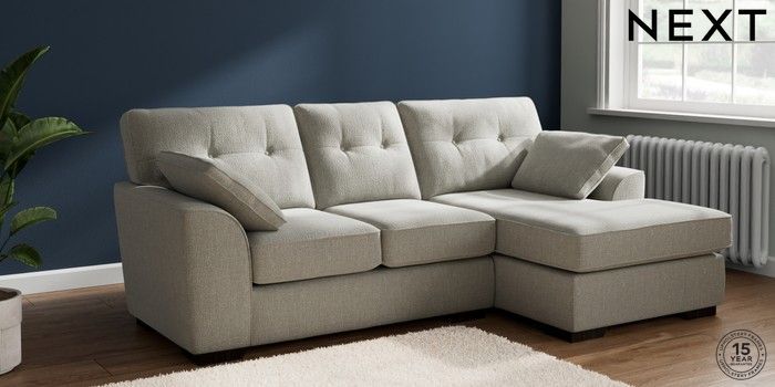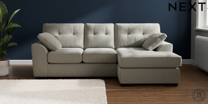 7.2.10 Buy Stamford Buttoned Back Small Sofa Chaise - Right Hand Chunky Texture Dove Large Square Angle - Dark from the Next UK online shop Click here to use our accessible website