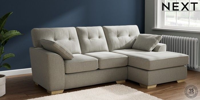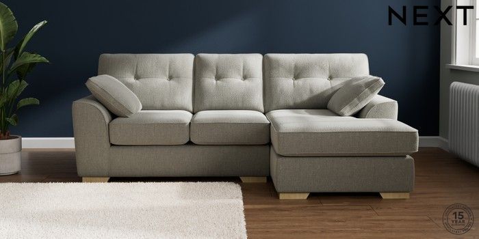 7.2.10 Buy Stamford Buttoned Back Small Sofa Chaise - Right Hand Chunky Texture Dove Large Square Angle - Light from the Next UK online shop Click here to use our accessible website
