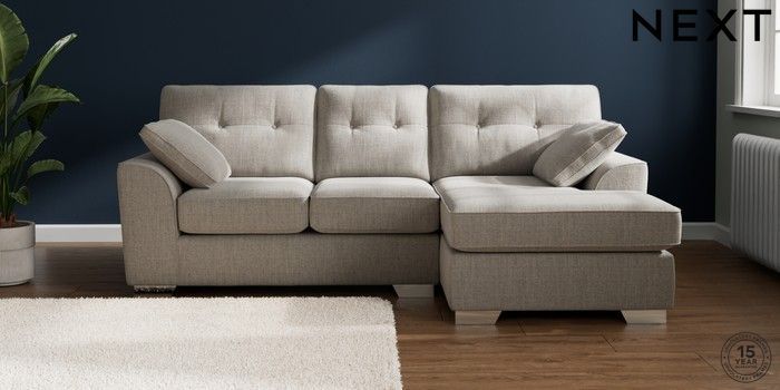 7.2.10 Buy Stamford Buttoned Back Small Sofa Chaise - Right Hand Chunky Weave Dove Grey Large Square Angle - Chrome Metal from the Next UK online shop Click here to use our accessible website