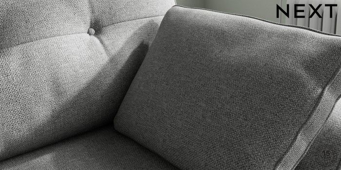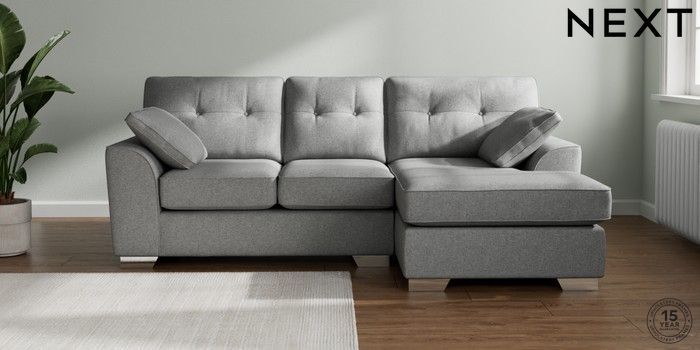 7.2.10 Buy Stamford Buttoned Back Small Sofa Chaise - Right Hand Chunky Weave Mid Grey Large Square Angle - Chrome Metal from the Next UK online shop Click here to use our accessible website