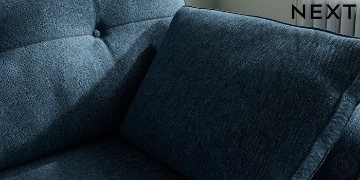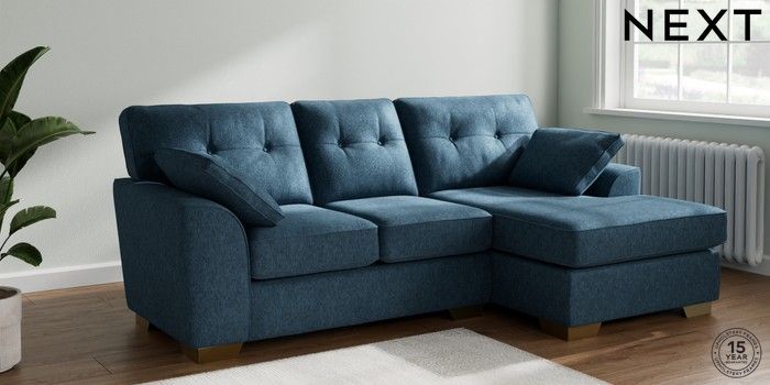7.2.10 Buy Stamford Buttoned Back Small Sofa Chaise - Right Hand Cotswold Chenille Dark Blue Large Square Angle - Brushed Brass from the Next UK online shop Click here to use our accessible website