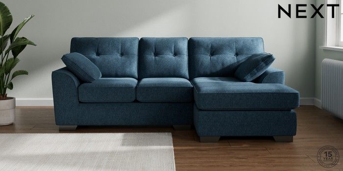 7.2.10 Buy Stamford Buttoned Back Small Sofa Chaise - Right Hand Cotswold Chenille Dark Blue Large Square Angle - Gunmetal from the Next UK online shop Click here to use our accessible website