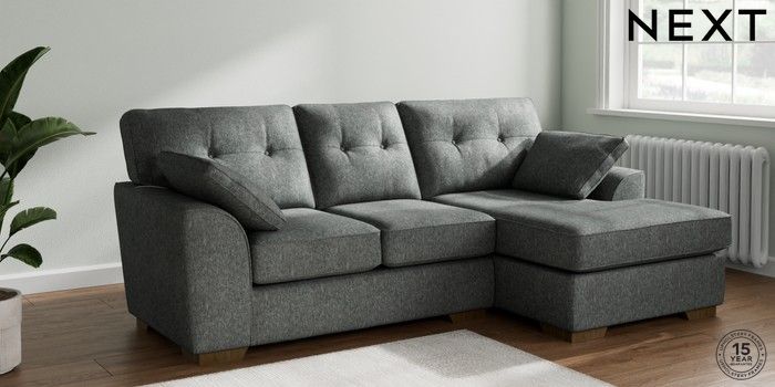7.2.6 Buy Stamford Buttoned Back Small Sofa Chaise - Right Hand Cotswold Chenille Dark Grey Large Square Angle - Mid from the Next UK online shop Click here to use our accessible website