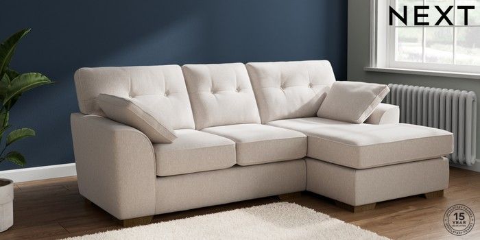 7.2.10 Buy Stamford Buttoned Back Small Sofa Chaise - Right Hand Cotswold Chenille Oyster Large Square Angle - Mid from the Next UK online shop Click here to use our accessible website