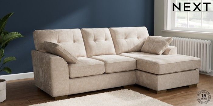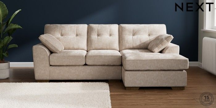 7.2.10 Buy Stamford Buttoned Back Small Sofa Chaise - Right Hand Distressed Velour Mid Natural Large Square Angle - Mid from the Next UK online shop Click here to use our accessible website