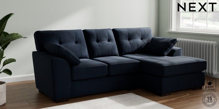 7.2.10 Buy Stamford Buttoned Back Small Sofa Chaise - Right Hand Fine Chenille Easy Clean Dark Navy Blue Large Square Angle - Dark from the Next UK online shop Click here to use our accessible website