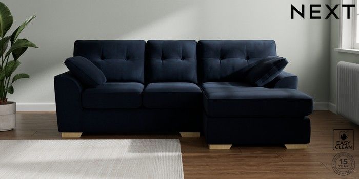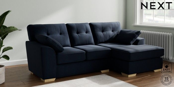 7.2.10 Buy Stamford Buttoned Back Small Sofa Chaise - Right Hand Fine Chenille Easy Clean Dark Navy Blue Large Square Angle - Light from the Next UK online shop Click here to use our accessible website