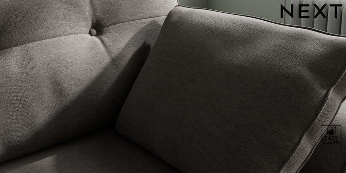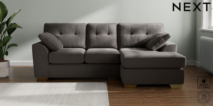 7.2.10 Buy Stamford Buttoned Back Small Sofa Chaise - Right Hand Fine Chenille Easy Clean Dark Smoke Grey Large Square Angle - Brushed Brass from the Next UK online shop Click here to use our accessible website