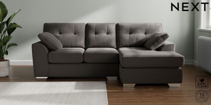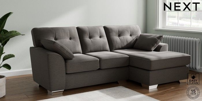 7.2.10 Buy Stamford Buttoned Back Small Sofa Chaise - Right Hand Fine Chenille Easy Clean Dark Smoke Grey Large Square Angle - Chrome Metal from the Next UK online shop Click here to use our accessible website