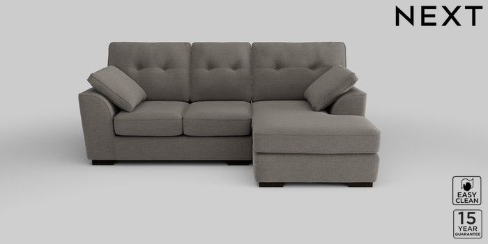 6.12.1 Buy Stamford Buttoned Back Small Sofa Chaise - Right Hand Fine Chenille Easy Clean Dark Smoke Grey Large Square Angle - Dark from the Next UK online shop Click here to use our accessible website