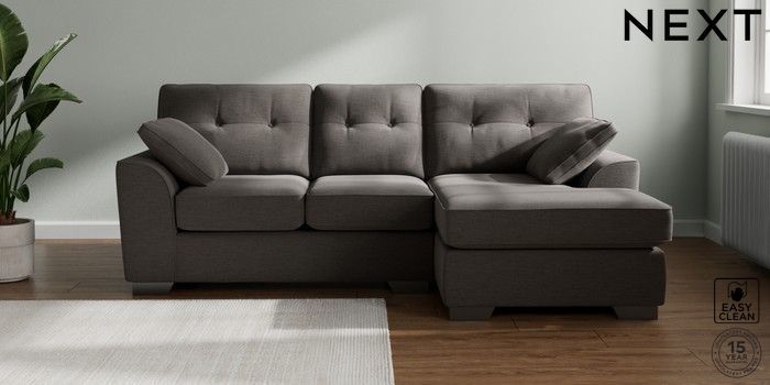 7.3.1 Buy Stamford Buttoned Back Small Sofa Chaise - Right Hand Fine Chenille Easy Clean Dark Smoke Grey Large Square Angle - Gunmetal from the Next UK online shop Click here to use our accessible website