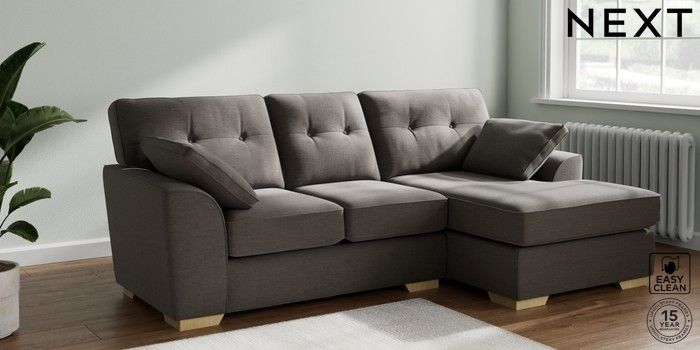 7.2.6 Buy Stamford Buttoned Back Small Sofa Chaise - Right Hand Fine Chenille Easy Clean Dark Smoke Grey Large Square Angle - Light from the Next UK online shop Click here to use our accessible website