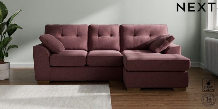 7.2.10 Buy Stamford Buttoned Back Small Sofa Chaise - Right Hand Fine Chenille Easy Clean Mid Mulberry Purple Large Square Angle - Mid from the Next UK online shop Click here to use our accessible website