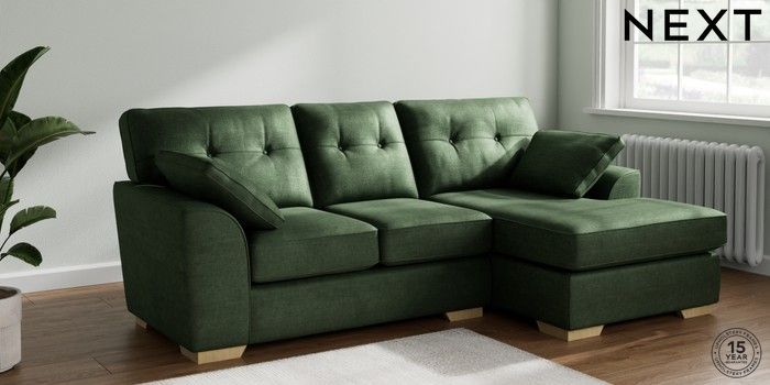 6.12.1 Buy Stamford Buttoned Back Small Sofa Chaise - Right Hand Luxe Chenille Dark Green Large Square Angle - Light from the Next UK online shop Click here to use our accessible website