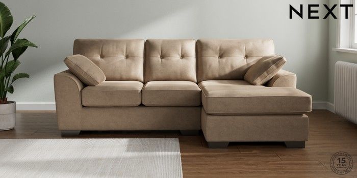 7.2.10 Buy Stamford Buttoned Back Small Sofa Chaise - Right Hand Luxe Chenille Mid Camel Beige Large Square Angle - Gunmetal from the Next UK online shop Click here to use our accessible website