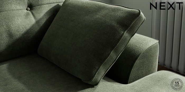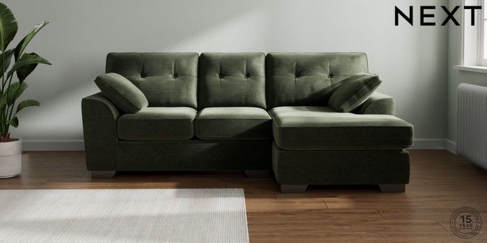 7.2.6 Buy Stamford Buttoned Back Small Sofa Chaise - Right Hand Luxe Chenille Mid Green Large Square Angle - Gunmetal from the Next UK online shop Click here to use our accessible website