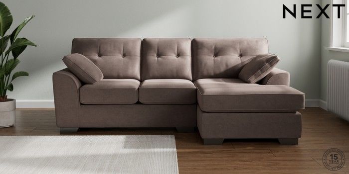 7.2.10 Buy Stamford Buttoned Back Small Sofa Chaise - Right Hand Luxe Chenille Mink Brown Large Square Angle - Gunmetal from the Next UK online shop Click here to use our accessible website