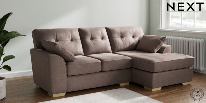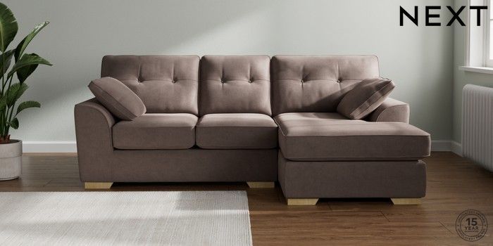 7.2.10 Buy Stamford Buttoned Back Small Sofa Chaise - Right Hand Luxe Chenille Mink Brown Large Square Angle - Light from the Next UK online shop Click here to use our accessible website