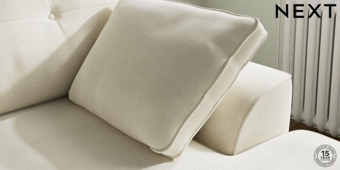 7.0.3 Buy Stamford Buttoned Back Small Sofa Chaise - Right Hand Luxe Chenille Oyster Large Square Angle - Chrome Metal from the Next UK online shop Click here to use our accessible website