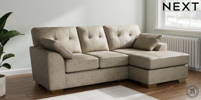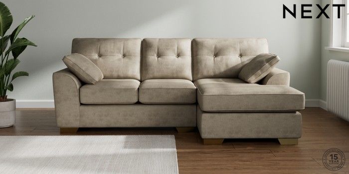 7.3.1 Buy Stamford Buttoned Back Small Sofa Chaise - Right Hand Monza Faux Leather Easy Clean Mink Brown Large Square Angle - Brushed Brass from the Next UK online shop Click here to use our accessible website