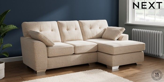 7.2.6 Buy Stamford Buttoned Back Small Sofa Chaise - Right Hand Multi Weave Mid Natural Large Square Angle - Chrome Metal from the Next UK online shop Click here to use our accessible website