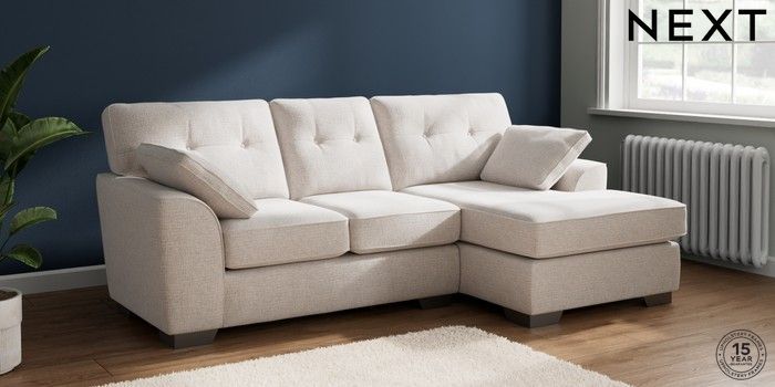 7.2.6 Buy Stamford Buttoned Back Small Sofa Chaise - Right Hand Multi Weave Oyster Large Square Angle - Gunmetal from the Next UK online shop Click here to use our accessible website