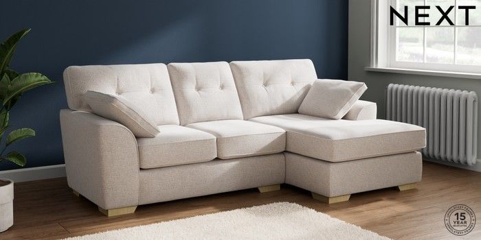 7.2.6 Buy Stamford Buttoned Back Small Sofa Chaise - Right Hand Multi Weave Oyster Large Square Angle - Light from the Next UK online shop Click here to use our accessible website
