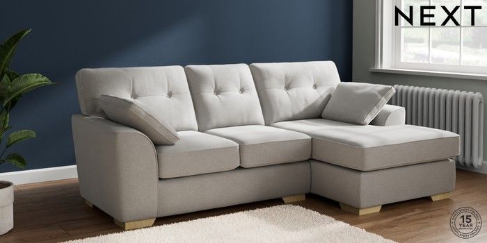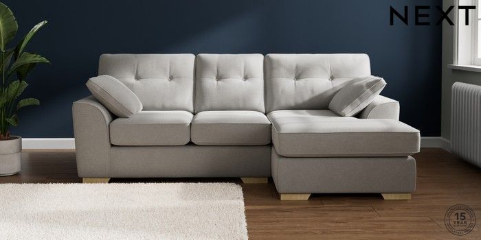 7.2.10 Buy Stamford Buttoned Back Small Sofa Chaise - Right Hand Natural Mix Light Grey Large Square Angle - Light from the Next UK online shop Click here to use our accessible website
