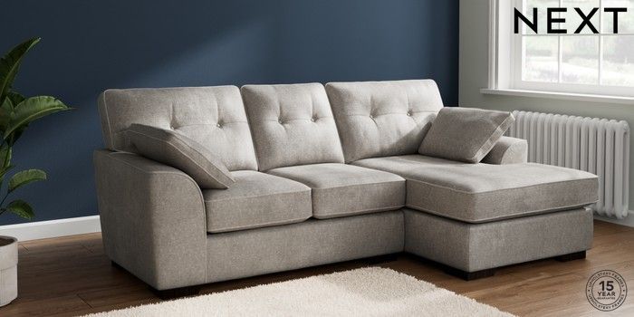 7.2.10 Buy Stamford Buttoned Back Small Sofa Chaise - Right Hand Plush Chenille Light Grey Large Square Angle - Dark from the Next UK online shop Click here to use our accessible website
