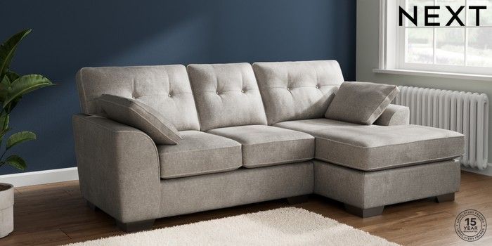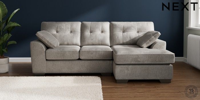 7.2.10 Buy Stamford Buttoned Back Small Sofa Chaise - Right Hand Plush Chenille Light Grey Large Square Angle - Gunmetal from the Next UK online shop Click here to use our accessible website