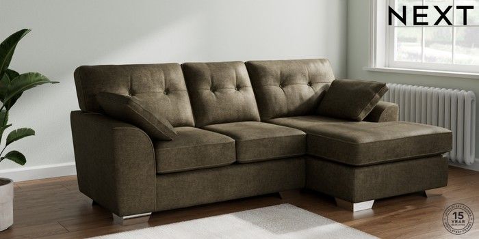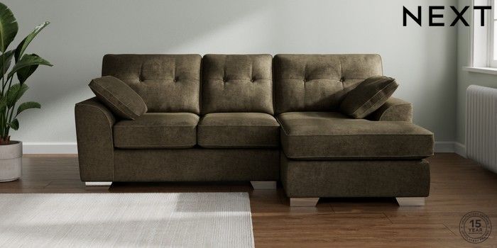 7.2.10 Buy Stamford Buttoned Back Small Sofa Chaise - Right Hand Plush Chenille Moss Green Large Square Angle - Chrome Metal from the Next UK online shop Click here to use our accessible website