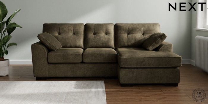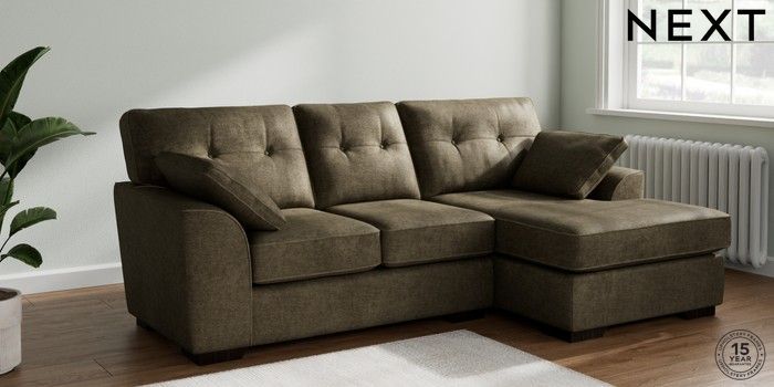 7.2.10 Buy Stamford Buttoned Back Small Sofa Chaise - Right Hand Plush Chenille Moss Green Large Square Angle - Dark from the Next UK online shop Click here to use our accessible website