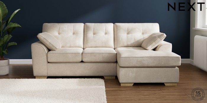7.2.10 Buy Stamford Buttoned Back Small Sofa Chaise - Right Hand Plush Chenille Oyster Large Square Angle - Light from the Next UK online shop Click here to use our accessible website