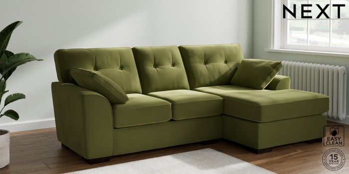 6.12.1 Buy Stamford Buttoned Back Small Sofa Chaise - Right Hand Plush Velvet Easy Clean Mid Olive Green Large Square Angle - Dark from the Next UK online shop Click here to use our accessible website