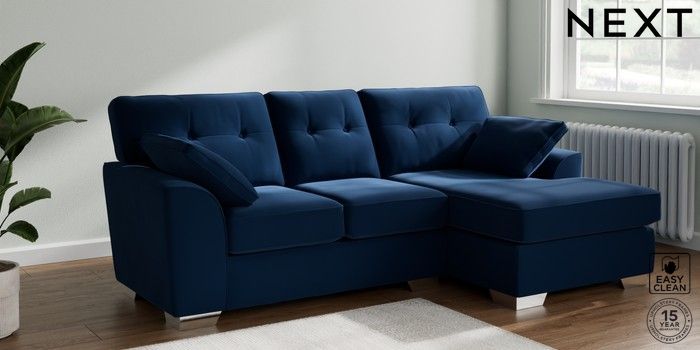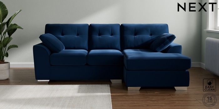 7.3.1 Buy Stamford Buttoned Back Small Sofa Chaise - Right Hand Plush Velvet Easy Clean Navy Blue Large Square Angle - Chrome Metal from the Next UK online shop Click here to use our accessible website