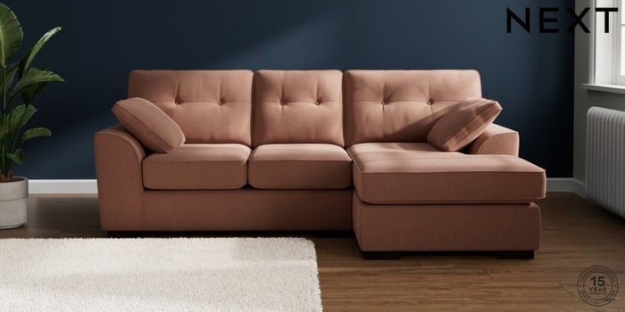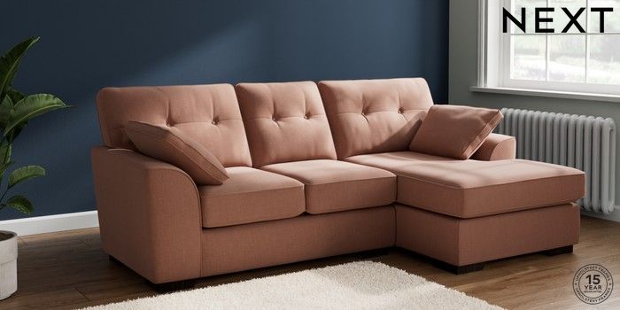 7.2.10 Buy Stamford Buttoned Back Small Sofa Chaise - Right Hand Relaxed Linen Look Light Rust Brown Large Square Angle - Dark from the Next UK online shop Click here to use our accessible website