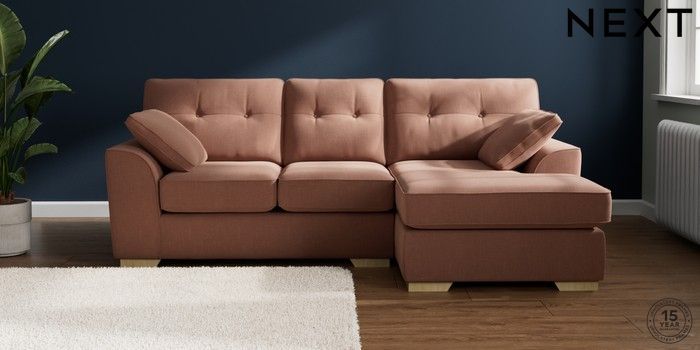 7.2.10 Buy Stamford Buttoned Back Small Sofa Chaise - Right Hand Relaxed Linen Look Light Rust Brown Large Square Angle - Light from the Next UK online shop Click here to use our accessible website