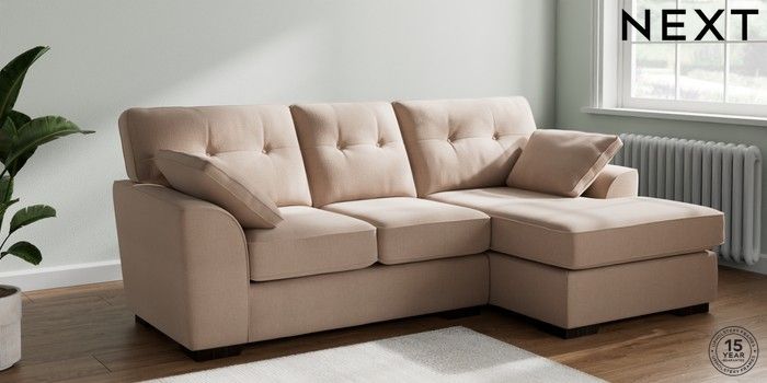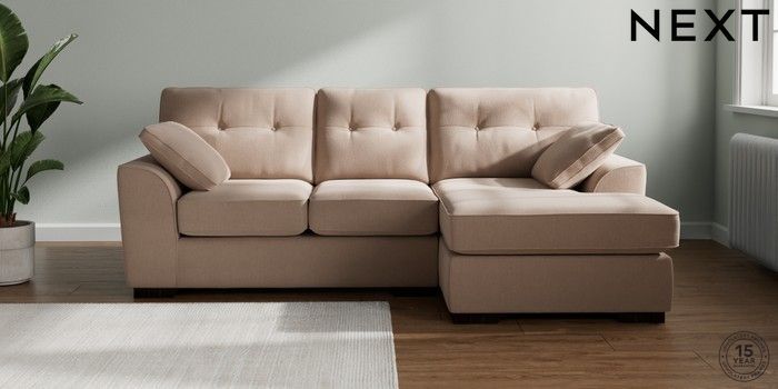 7.2.10 Buy Stamford Buttoned Back Small Sofa Chaise - Right Hand Relaxed Linen Look Mid Natural Large Square Angle - Dark from the Next UK online shop Click here to use our accessible website