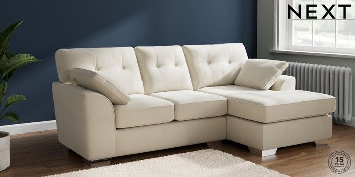 7.3.1 Buy Stamford Buttoned Back Small Sofa Chaise - Right Hand Relaxed Linen Look Oyster Large Square Angle - Chrome Metal from the Next UK online shop Click here to use our accessible website