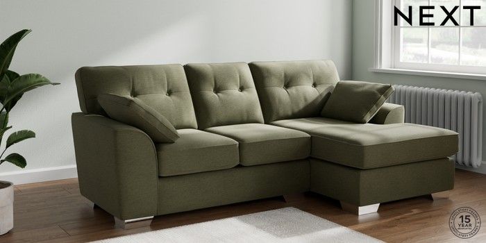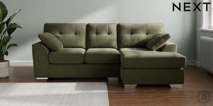 7.2.10 Buy Stamford Buttoned Back Small Sofa Chaise - Right Hand Ripple Chenille Mid Moss Green Large Square Angle - Chrome Metal from the Next UK online shop Click here to use our accessible website