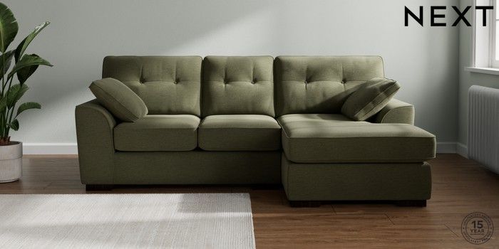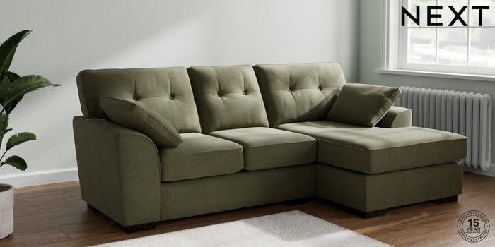 7.2.10 Buy Stamford Buttoned Back Small Sofa Chaise - Right Hand Ripple Chenille Mid Moss Green Large Square Angle - Dark from the Next UK online shop Click here to use our accessible website