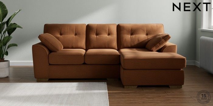 7.2.10 Buy Stamford Buttoned Back Small Sofa Chaise - Right Hand Ripple Chenille Mid Rust Brown Large Square Angle - Mid from the Next UK online shop Click here to use our accessible website