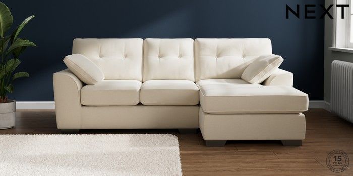 7.2.10 Buy Stamford Buttoned Back Small Sofa Chaise - Right Hand Ripple Chenille Oyster Large Square Angle - Gunmetal from the Next UK online shop Click here to use our accessible website