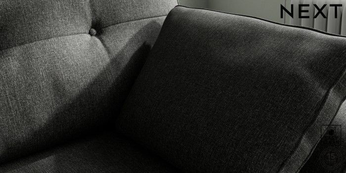 7.2.10 Buy Stamford Buttoned Back Small Sofa Chaise - Right Hand Tweedy Blend Easy Clean Charcoal Grey Large Square Angle - Brushed Brass from the Next UK online shop Click here to use our accessible website