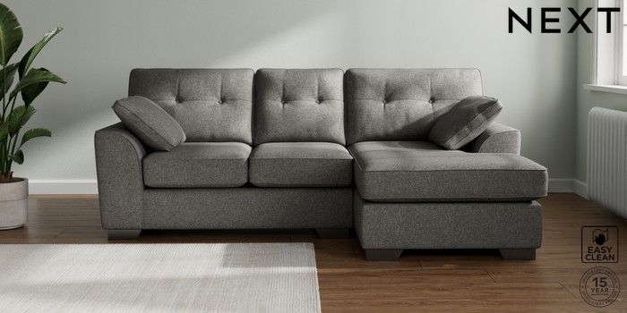 7.2.10 Buy Stamford Buttoned Back Small Sofa Chaise - Right Hand Tweedy Blend Easy Clean Dark Grey Large Square Angle - Gunmetal from the Next UK online shop Click here to use our accessible website