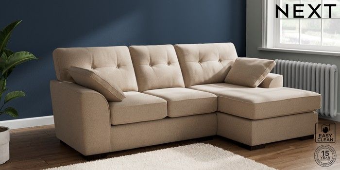 7.2.10 Buy Stamford Buttoned Back Small Sofa Chaise - Right Hand Tweedy Blend Easy Clean Light Dove Natural Large Square Angle - Dark from the Next UK online shop Click here to use our accessible website