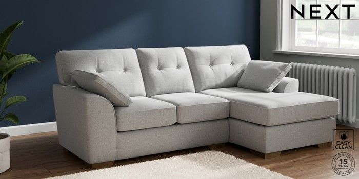 7.2.10 Buy Stamford Buttoned Back Small Sofa Chaise - Right Hand Tweedy Blend Easy Clean Light Silver Grey Large Square Angle - Mid from the Next UK online shop Click here to use our accessible website