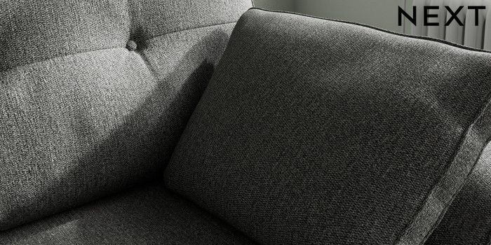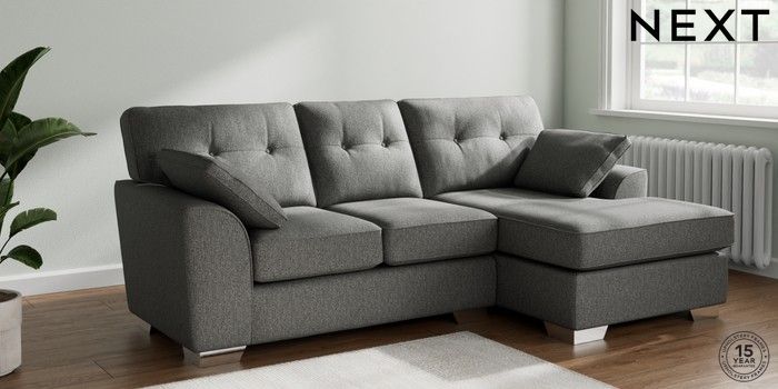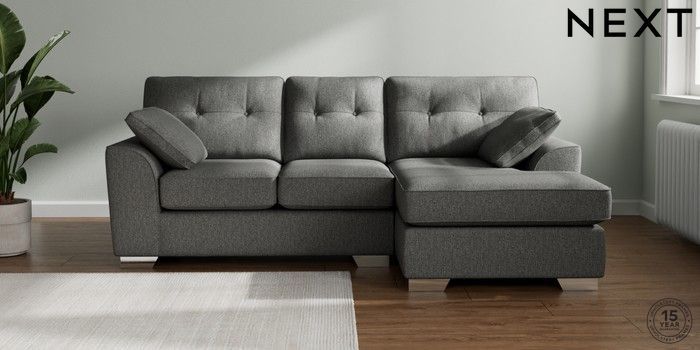 7.2.10 Buy Stamford Buttoned Back Small Sofa Chaise - Right Hand Tweedy Chenille Dark Grey Large Square Angle - Chrome Metal from the Next UK online shop Click here to use our accessible website